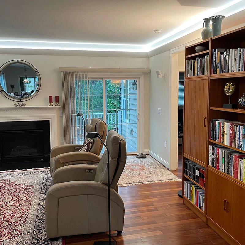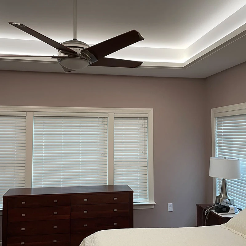 Molding with LED lighting channels built in—designed to enhance ambiance while lowering energy use through efficient, high-lumen illumination.