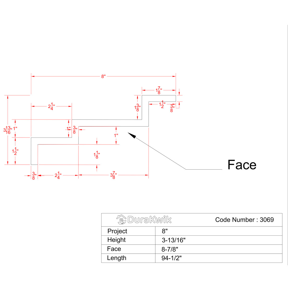 3-13/16"H x 8"P x 8-3/4"F