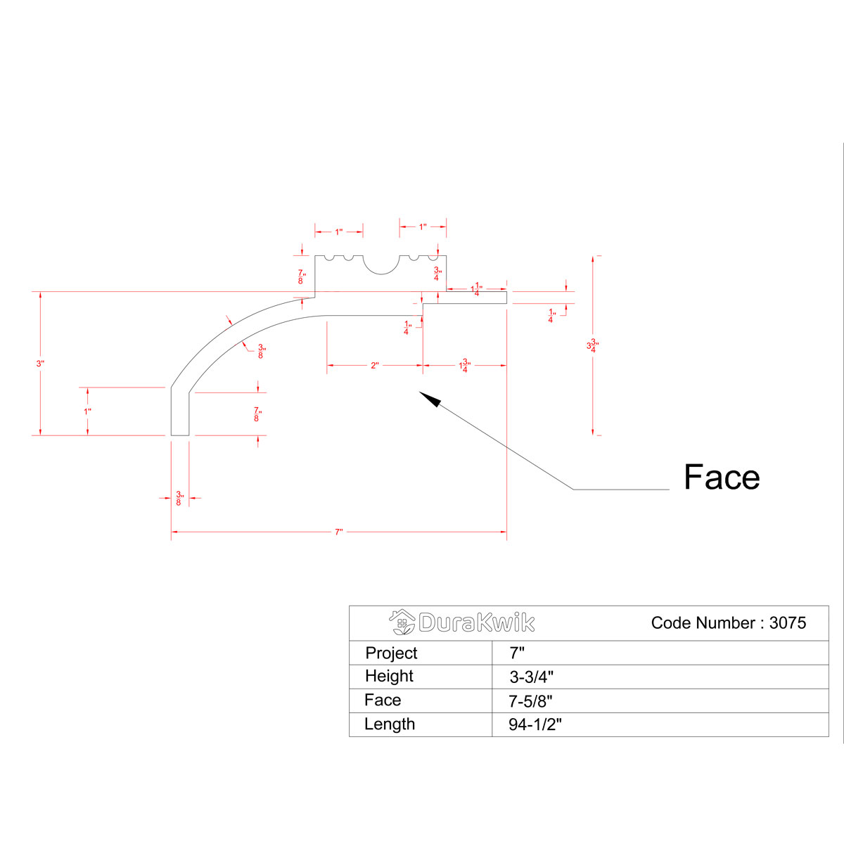 3-3/4"H x 7"P x 7-5/8"F